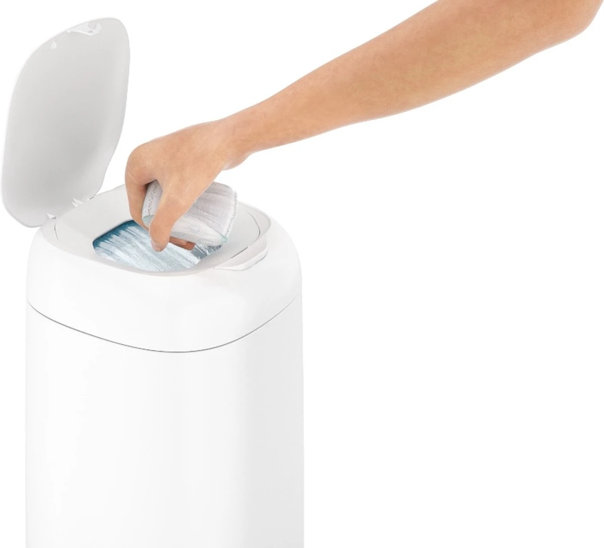 Ook handig: je kan de luieremmer makkelijk bedienen met 1 hand!