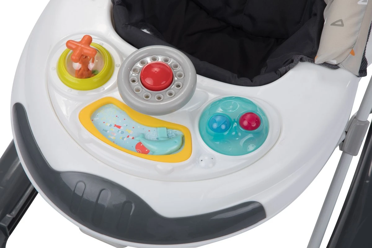 Houd je baby bezig met de Safety 1st Bolid loopstoeltje. Kinderen kunnen zich vermaken met het elektronische speelblad met lichtjes en 12 melodieën terwijl ze de wereld verkennen. En ze zullen comfortabel in de stoel zitten, ongeacht hun grootte, dankzij de 3 hoogtestanden. Eenmaal opgevouwen is Bolid door zijn compactheid gemakkelijk op te bergen in kleine ruimtes. Antislip-pads en een snelheidsreductiemiddel maken het veiliger om rond te komen.