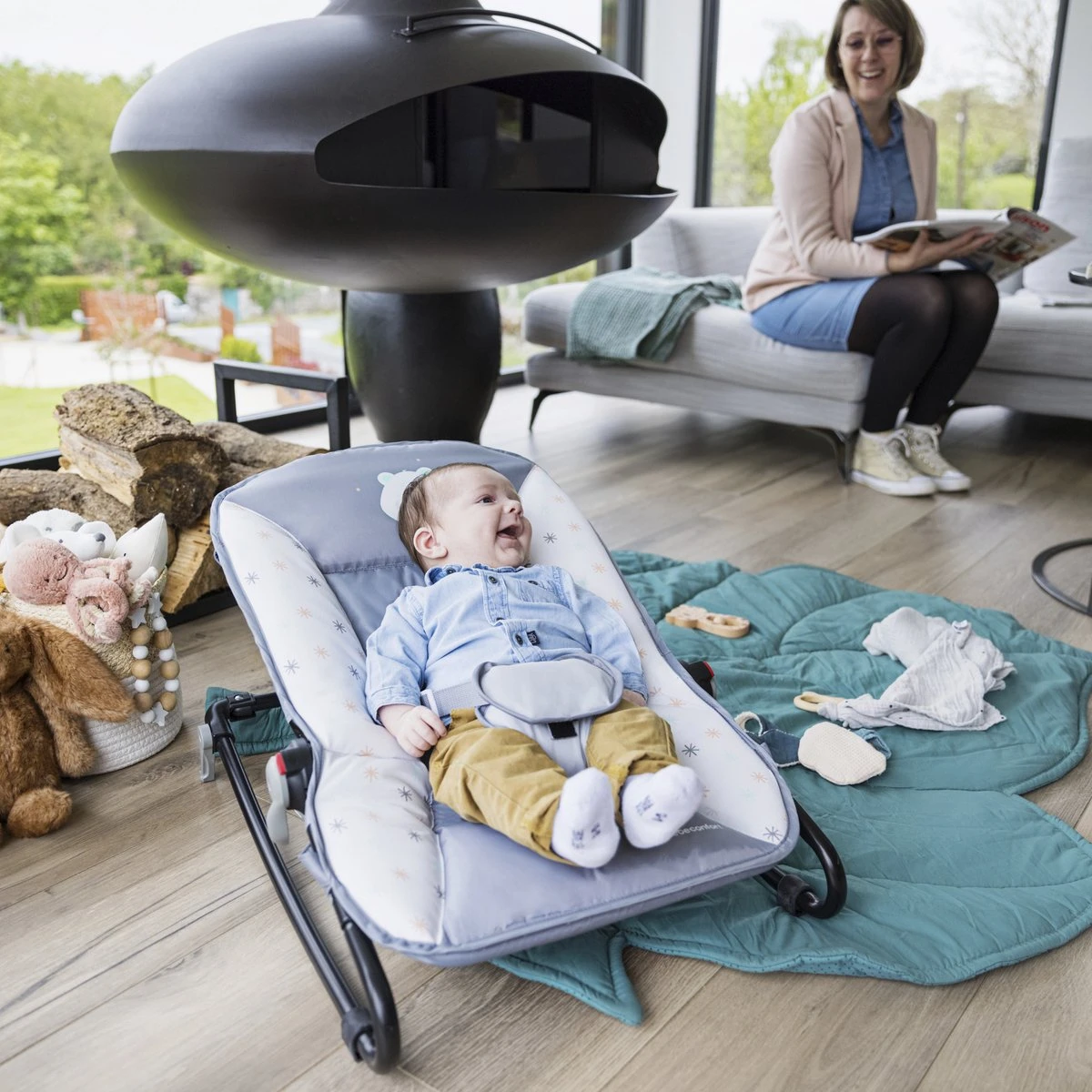Starlight is het wipstoeltje dat in huis niet mag ontbreken. Als je baby moet ontspannen, verwelkomt de comfortabele en beschermende aansluitende zitting van Starlight hem of haar graag. Dankzij de 5 ligstanden en de schommelfunctie vindt je baby de juiste houding die bij hem of haar past. Ontspannende momenten vinden in alle veiligheid plaats dankzij de driepuntsgordel.