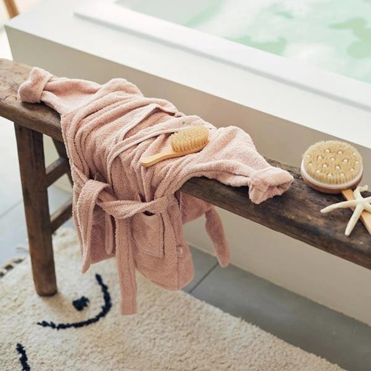 Verkrijgbaar in vijf trendy kleuren. Shop het badstof badjasje in roze, caramel, nougat, grijs, groen en blauw