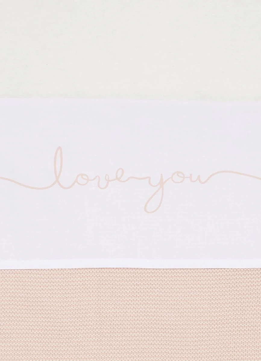 Wit laken voor ledikant met lieve opdruk “Love You” in Kleur.