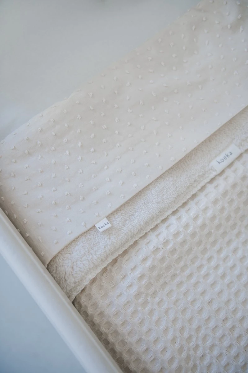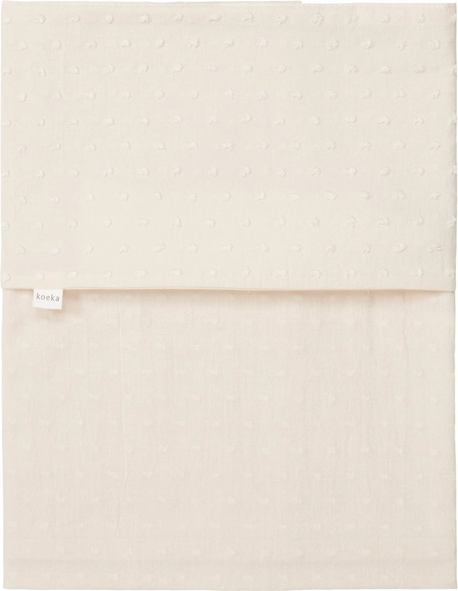 Koeka wieglakens zijn gemaakt van 100% katoen en voelen daarmee lekker fris en crispy aan. Alle lakentjes combineren perfect met de verschillende Koeka wiegdekens. Door de kleine details op deze lakens kan je de wieg van je baby naar eigen smaak stylen. Kies verschillende lakens en geef je babykamer snel een andere look!Speels en romantisch; de subtiel tone-in-tone geborduurde bolletjes creëren de uitstraling van deze stof. Napa is zacht en luchtig en gemaakt van 100% katoen.De afmeting van dit product is 100x80cm.