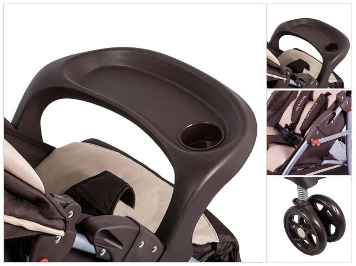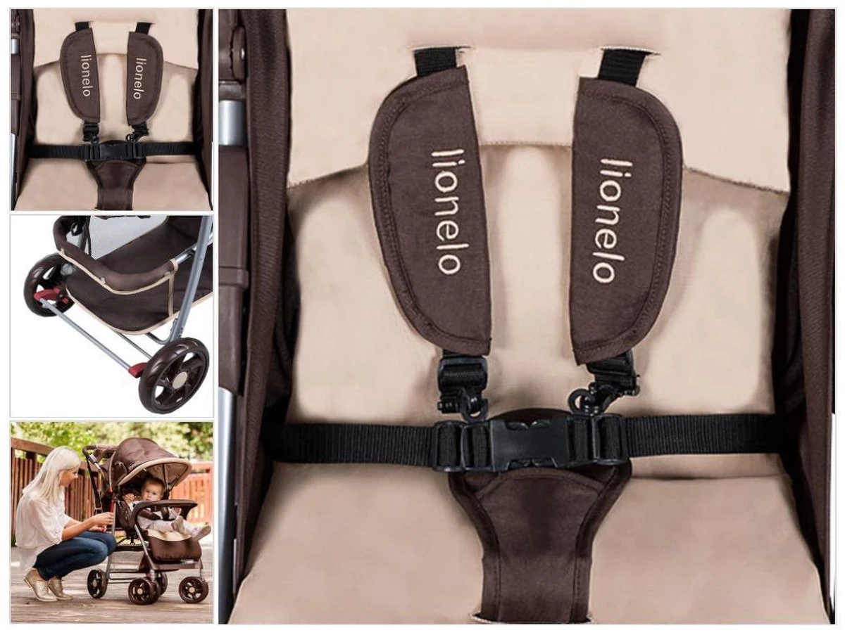 Naast de basisfuncties, houdt deze je kind de juiste positie en voorkomt dat ze uit de trolley.