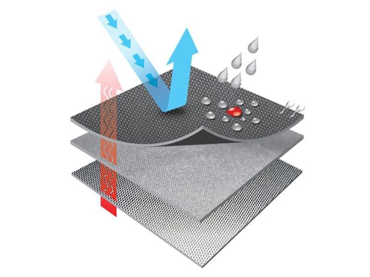 De gebruikte stof heeft thermoregulerende eigenschap. De buitenstructuur in de vorm van een ‘wafel’ help om zweet en overtollige warmte van het lichaam af te voeren en tegelijkertijd afkoelt.